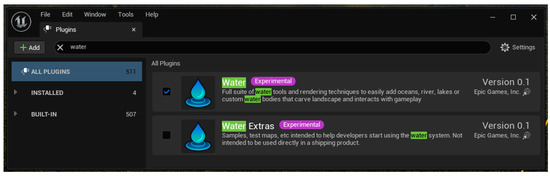 Since UE cannot import GIS file formats immediately, and there seemed to be no Datasmith extension for GIS software, the third option was to find suitable plugins to import GIS data from the Vltava project into UE. Unreal Engine Marketplace was used to find such plugins. This official marketplace is available from web browsers and Epic Games Launcher. It allows the sharing and selling of assets, such as textures, models, animations, and code, that can be added to individual projects or installed in the engine.
