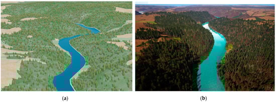 In summary, the initial literature research found a significant gap in the literature, which helped set the direction for the case study, during which a part of the 1670 km2 Vltava River valley area was visualized using the Unreal Engine. Each part of the visualization process was documented with recommendations and solutions to problems found and solved in the case study to bridge this literature gap and provide enough information to make further research on using game engines (namely Unreal Engine) more accessible. This is important since game engines are becoming more popular each day with their wide range of capabilities, intertwined technologies that can be implemented and used with game engines such as VR, and use cases applicable to a wide range of industries from geomatic and hydrology to faraway sectors like medicine. While landscape visualization may not be helpful in such distant industries, parts of this study may still be useful as sources of information on the inner workings of UE.