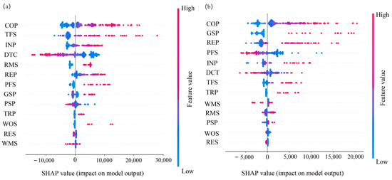 SHAP summary plot of (a) weekday and (b) weekend models.