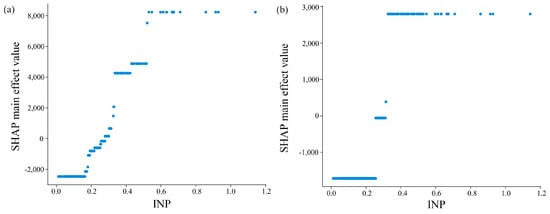 SHAP main effect value for industry POIs: (a) weekday and (b) weekend.