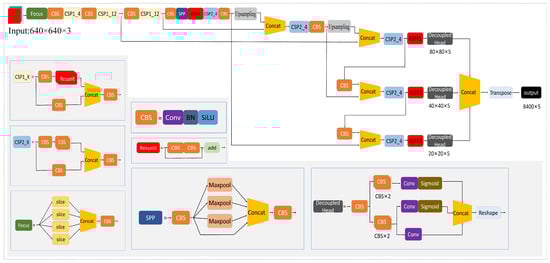 To determine the optimal position for inserting the attention module, a series of comparative experiments were conducted, as shown in Table 1. In the table, the symbol ✓ indicates the addition of the attention module, while the symbol × indicates the absence of the attention module. The first potential insertion point is located after the initial transformation layer, specifically, within the backbone section, following the initial convolutional layers (CSP1_x, CSP2_x). Inserting the attention module at this position can enhance the network’s early understanding of features, aiding in the capture of basic image information. Another insertion point is after the SPP module, where integrating the attention module can help focus attention at deeper levels of feature extraction and optimize feature representation before multi-scale feature extraction, thereby improving the initial feature quality.