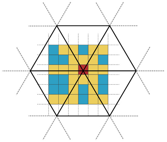 - Sahr, K. Central place indexing: Hierarchical linear indexing systems for mixed-aperture hexagonal discrete global grid systems. Cartogr. Int. J. Geogr. Inf. Geovisualization 2019, 54, 16–29. [Google Scholar] [CrossRef]
