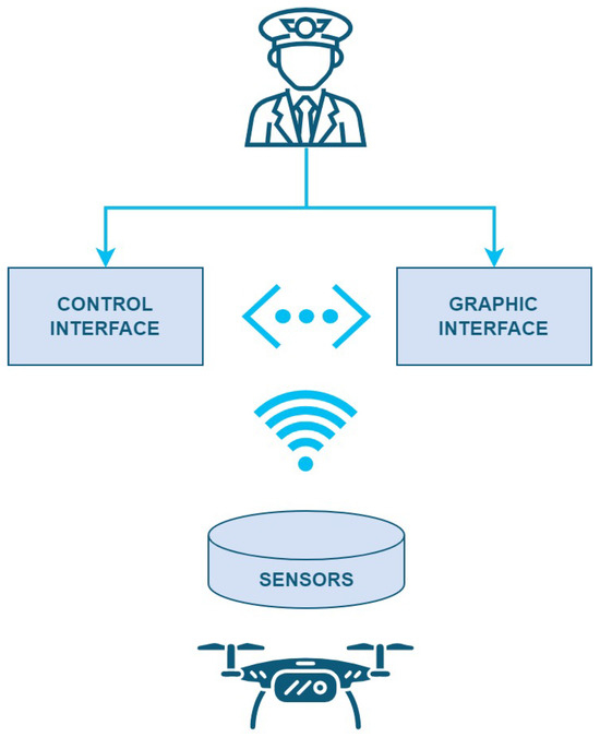 The proposed system comprises two interfaces: a control interface and a graphical interface. The control interface enables the operator to pilot the UAV using a visual line-of-sight (VLOS) [77] navigation approach. Conversely, the graphical interface provides the user with the ability to analyze the project implementation and conduct position verifications of the models.