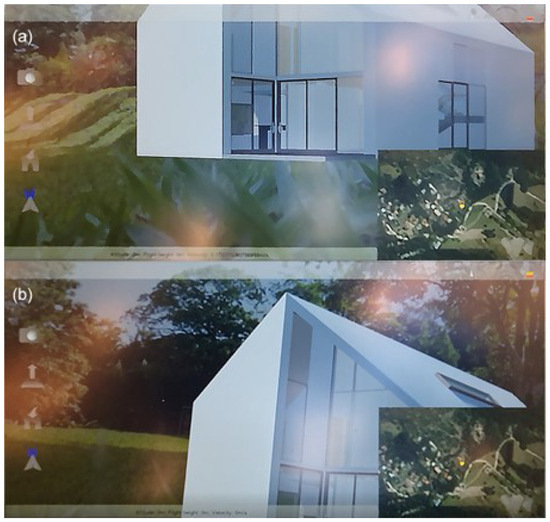 Therefore, this study represents an advancement in the concurrent utilization of AR and UASs. The visualization of a house model in AR was achieved using real-time imagery captured by the UAS, eliminating the need for markers. This research specifically addressed architectural visualization; however, this type of integration of AR with UAVs could be expanded to other potential applications, such as drainage systems, underground systems, and historic reconstruction.