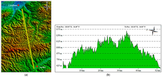 Topographic map of study area: (a) DEM topographic map; (b) topographic profile.