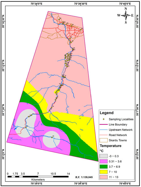 The main driving force of the watershed is temperature, wherein flow accumulation within the Satpara stream increases in the summer due to snow melting and decreases in the winter due to frost wedging. The mean daily temperature of the Deosai Plateau ranges from −20 °C in winter to 9 °C in summer, having an annual precipitation of 510 mm–750 mm. The Deosai Plateau is rich in hydrology, with four big water bodies draining three streams into the Sheosar Lake and an extensive marshy basin [32].