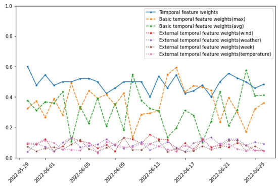 Secondly, we train and validate the model, and SoftMax normalizes the weight parameters obtained in the validation set to obtain the importance factor of each feature to obtain the spatial–temporal feature attention fusion and interpretation module.
