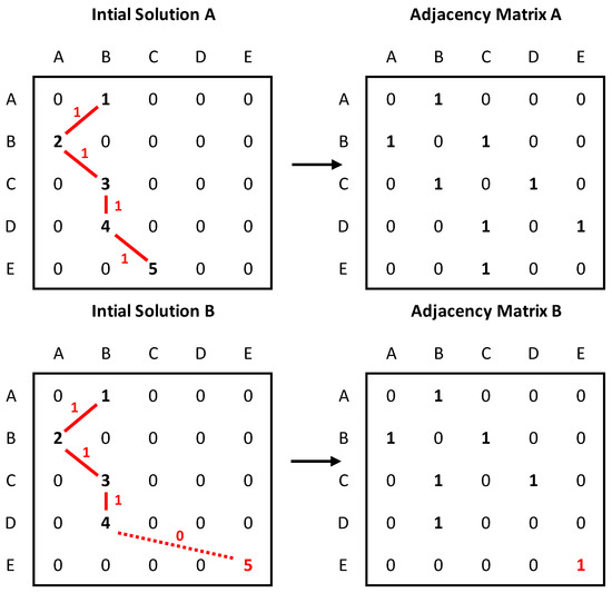 Contiguity control is based on a methodology that utilizes the Breadth-First Search (BFS) algorithm for traversing graph-based data structures [86]. This approach addresses the contiguity check as a graph-based problem, where each potential optimal solution is represented as a graph comprising edges and nodes (see Figure 6). Rather than being mathematically integrated into the optimization problem, contiguity is treated as a requisite property for any valid solution. According to a method following this approach [87], first is computing an optimal solution and then verifying whether all nodes of the graph within a contiguous solution have a connected path. If the solution meets all the constraints of the initial model, the optimization process is terminated; otherwise, the problem is resolved iteratively until an optimal solution is achieved. The proposed multiple factors optimization process uses weights for each criterion in the objective function and can be expressed as