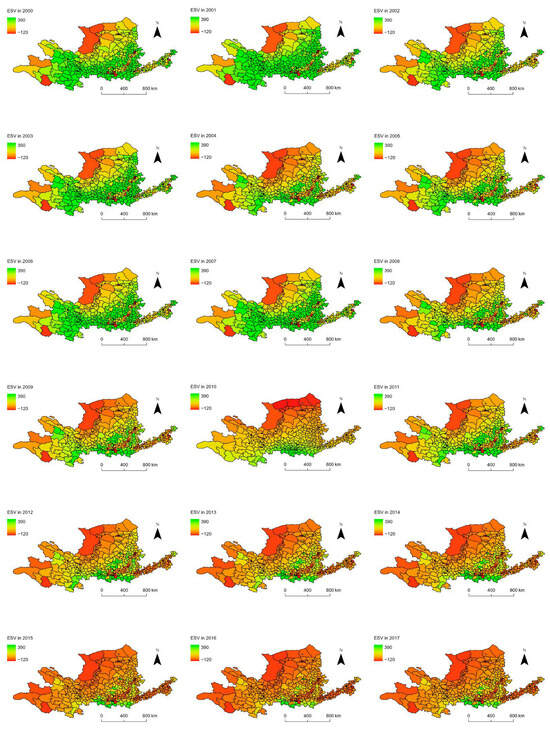 3.1. Spatial Distribution of the ESV from 2000 to 2030