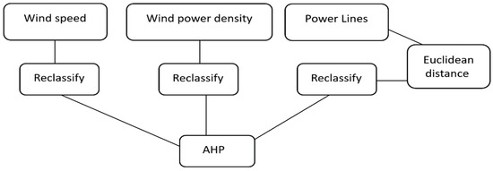 In this section, we describe the methodology applied to conduct a geospatial analysis of wind energy in the Red Sea. The GIS-AHP model was built to perform the site stability analysis. The main steps were as follows:
