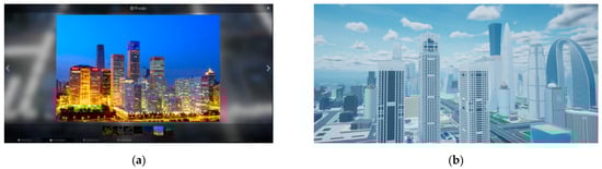 (a) Three-dimensional architectural white film; (b) digital city scene.