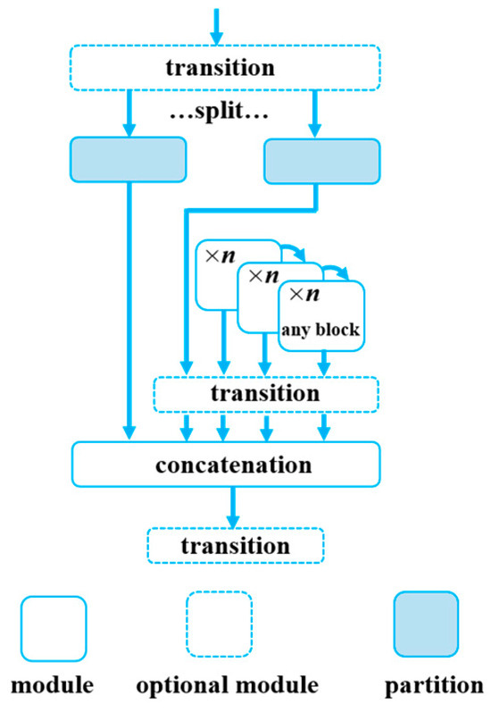 The YOLOv9 model introduces a novel concept called Programmable Gradient Information (PGI), which aims to solve the issue of information loss in deep networks during the forward propagation process in object detection models. PGI ensures that deep neural networks can maintain complete input information during the learning process, thereby obtaining reliable gradient information to update weights and improving the accuracy of weight updates [46]. As shown in Figure 2, PGI consists of three main components: the main branch (backbone), the auxiliary reversible branch, and multi-level auxiliary information. PGI generates stable gradients through the auxiliary reversible branch to ensure that deep network features maintain key attributes when performing specific tasks, avoiding semantic information loss that may occur when fusing multi-path features in traditional deep supervision. Additionally, YOLOv9 adopts a new lightweight network architecture called Generalized Efficient Layer Aggregation Network (GELAN, as shown in Figure 3). The GELAN module is a further extension of the ELAN module from YOLOv7, with the design considering the parameter amount, computational complexity, and inference speed. GELAN optimizes the network structure through gradient path planning and achieves parameter utilization efficiency surpassing current state-of-the-art methods. This design not only improves the model’s performance but also ensures its efficiency, allowing YOLOv9 to maintain a lightweight profile while achieving accuracy and speed.
