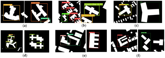 Local recognition ability: As shown in Figure 13d, for some local shapes within larger irregular buildings, the YOLO model can identify specific shapes from the overall information, demonstrating the ability to distinguish local features from the overall context.