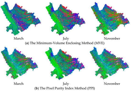 3.2. Comparative Analysis Between MVE and PPI Endmember Selection Methods