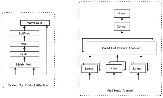 Multi-Head Attention (MHA) is used instead of performing a single attention function (Figure 1). MHA is used on keys (K), values (V), and queries (Q), which are given to the algorithm. Keys, values, and queries are extracted from text using attention. Extracting K, V, and Q from the source text is considered as applying self-attention. With this approach, the model can have the ability to learn from different representations while calculating an output.