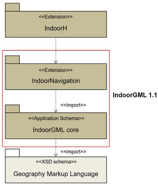 The basis of IndoorH is IndoorGML 1.1. As illustrated in Figure 4, it specifically extends the Core Module of IndoorGML, which is also an application schema of OGC GML 3.2.1.