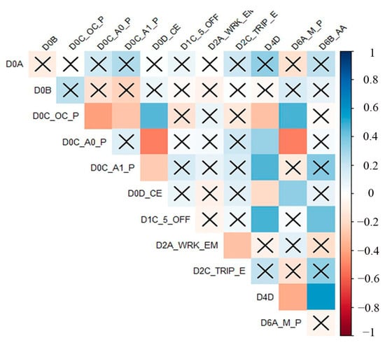 In total, there were more than 300 independent variables. Despite this availability of substantial number of variables, not all could be used for the spatial regression analyses. Therefore, correlation analysis was used to select the candidates and eliminate severe collinearity problems. In this analysis, the threshold values were chosen as −0.7 and 0.7. Moreover, the decision on the variables to be selected was based on the work of Alisan et al. []. The variables were sorted according to the main characteristics of the built environment. Table 1 presents the final list of variables and their descriptive statistics.