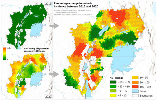 4.1. Percentage Change in Malaria between 2013 and 2020