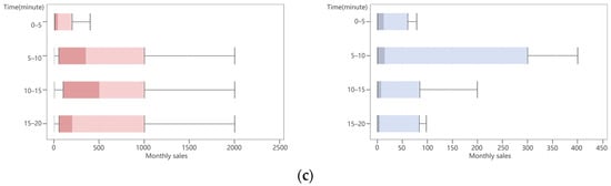To evaluate the correlation between B&Cs location and online monthly sales, we counted the monthly sales in each time cost circle for comparison. Notably, to avoid data errors caused by platform differences, we only used Meituan data in this part.