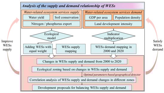 This study aims to quantitatively evaluate the spatial distribution and driving factors of WESs supply and demand changes in the Southern River Basin from 2000 to 2020 at a grid scale. By comprehensively considering the spatial characteristics of WESs supply and demand dynamic changes, ecological zoning is conducted. The OPGD method is used to explore the spatial correlation of WESs supply and demand in different zones.