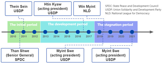 - The development period witnessed Myanmar’s evolution from the “Democratic Transition Period” to the “Democratic Consolidation Period”, a crucial phase in the country’s transition to democracy [34]. With the reduction of conflict, the state shifted its focus towards improving national living standards. The vigorous development of infrastructure and economic construction was accompanied by challenges related to human rights and environmental issues, which led to INGOs committing to human rights and democratic reforms. INGOs became a new force in Myanmar’s political transition, with an increase in both the number and scope of their activities compared to the previous period.