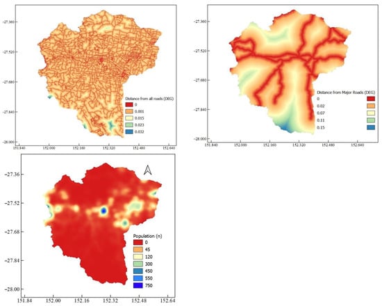 The case study region, Lockyer Catchment, is situated in SEQ, as shown in Figure 2. Lockyer Creek, a tributary of Brisbane River, is the primary stream, surrounded by several sub-catchments. The catchment covers an area of 3000 km2, experiencing an average annual rainfall ranging from 1000 to 2012 mm [32]. The Lockyer catchment includes a range of physical geographic attributes, encompassing the distance of water paths from 0 to 102,815 m, elevations ranging between 30 and 1073 m, basin slopes spanning from 0 to 66 degrees, channel network slopes ranging from 0 to 18 degrees, and a total channel network length of 922,025.285 m. The Lockyer catchment provides significant environmental, economic, and social values and Australia’s most fertile agricultural land for the cultivation of highly valuable vegetables [33]. In Australia, floods are one of the frequently occurring disasters that have accounted for substantial amounts of environmental and economic losses in recent years; hence, mitigation of the risks associated with the impacts of these events is necessary [34,35].