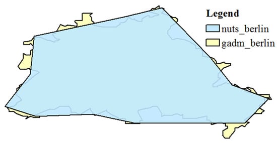 Incongruency of geometric shapes for Berlin between NUTS and GADM.