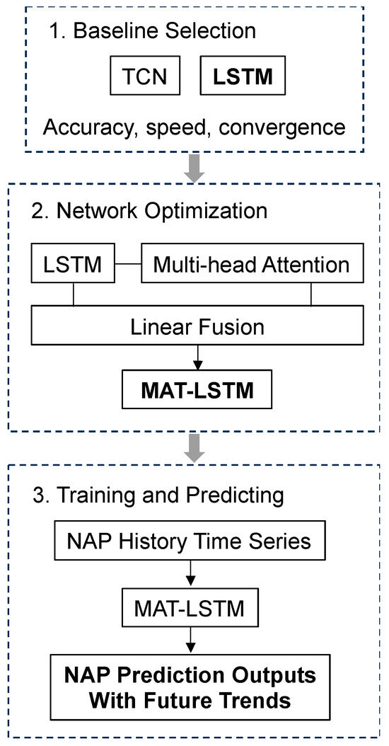 This section discusses three types of network architectures: the classic TCN, the classic LSTM, and the improved MAT-LSTM. The research steps and flow chart are illustrated as Figure 1.