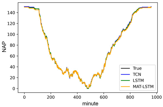 Figure 7 illustrates the NAP predicted by the TCN, LSTM, and MAT-LSTM models, employing the D1 dataset as a case study. All three methods provided accurate NAP predictions, demonstrating similar trends and closely resembling the ground truth. The prediction accuracies and training times across various datasets are listed in Table 4 and Table 5, respectively.