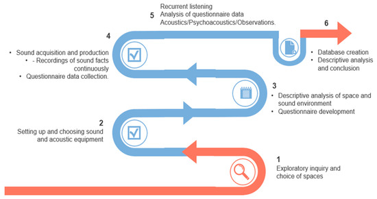 The search for a better understanding of a soundscape requires a multidisciplinary approach combining several experimental protocols as well as qualitative evaluations [15]. Recent developments in soundscape research have seen a growing emphasis on the integration of quantitative and qualitative approaches, as well as the application of novel technologies for soundscape characterization and design. Kang [16] provides a comprehensive review of the current state-of-the-art in soundscape research, highlighting the need for multidimensional frameworks that combine acoustic measurements with human perceptual assessments and the potential of such approaches for informing urban planning and design.