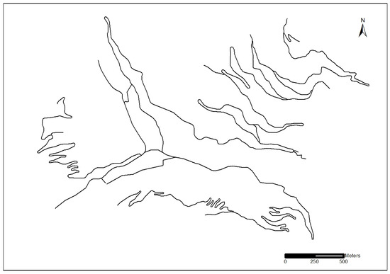 Experimental data on Sichuan Province, China were downloaded from OpenStreetMap (OSM) at https://www.openstreetmap.org/ (accessed on 2 May 2024). The scale of these experimental data was 1:10,000, as shown in Figure 12. Figure 13 shows the road map after symbolization, and the width of the road symbols on the map was from 0.6 to 1.2 mm for different types of roads. The total length of road centerlines in the experimental dataset was 24.36 km on the Earth. The scale of Figure 13 is 1:50,000.