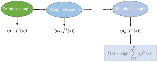 Diagram of the AdaBoost model. Each individual sub-model is trained on a dataset weighted according to calculations from the pre-model [13].