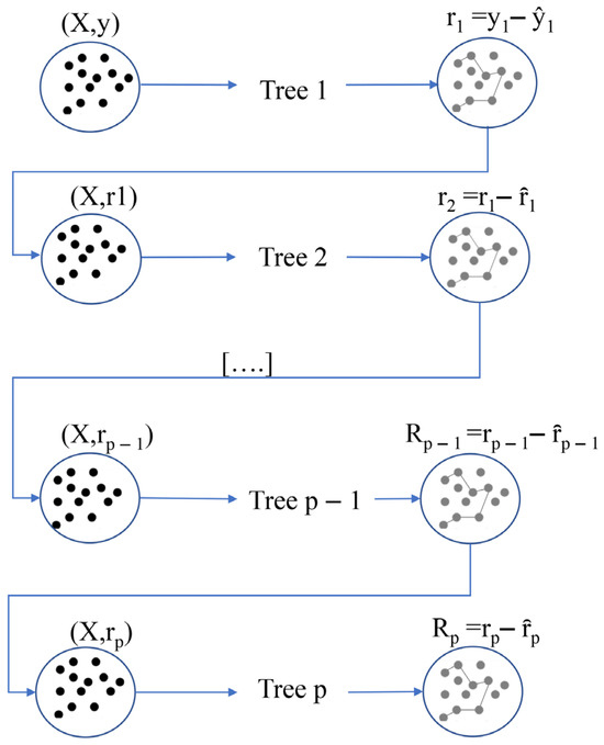 Training method using GB. Decision tree models are arranged in a sequence. Each decision tree is constructed based on the predictions of the preceding decision tree. At each decision tree, the model will attempt to fit the residuals from the previous decision tree [13].