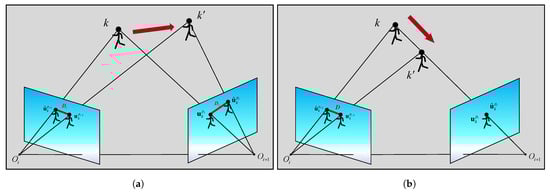 The reprojection error model for dynamic features. (a) Moving in a non-epipolar direction; (b) moving in an epipolar direction.