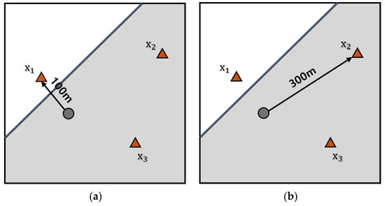 An example of this is shown in Figure 1. The thick line represents the boundary of the administrative district, the circle represents a residence with children and youth, and the triangle represents a residence of an offender. As shown in Figure 1b, children and youth can receive information about offender X2 who is relatively far away, but as seen in Figure 1a, the information on offender X1, who is located very close by, cannot be received by the children and youth because the offender’s residence is not in the same administrative district. To provide practical information, it is necessary to revise the notification system to one that is based on distance from the residence of the sex offender. Therefore, an analysis of the problems caused by the current notification system can guide the basic research for effective policy improvements.