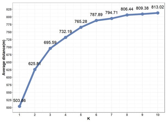 Figure 8 shows the average distance from the nearest sex offender to the 10th closest sex offender based on the center point of each grid to ascertain the distance between child- and youth-care households and sex offenders residing nearby. The analysis shows that the average distance from children and youth to the nearest sex offender is approximately 500 m, which implies that sex offenders reside within 500 m of their location, which is generally considered walking distance in Korea.