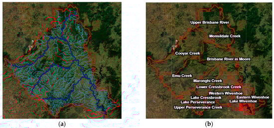 The upper Brisbane catchment. (a) Upper Brisbane River catchments. (b) Sub-catchments for the upper Brisbane River.