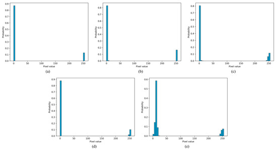 Probability distribution of the road image pixels in different cities. (a) Chicago. (b) Los Angeles. (c) New York. (d) Phoenix. (e) Washington.