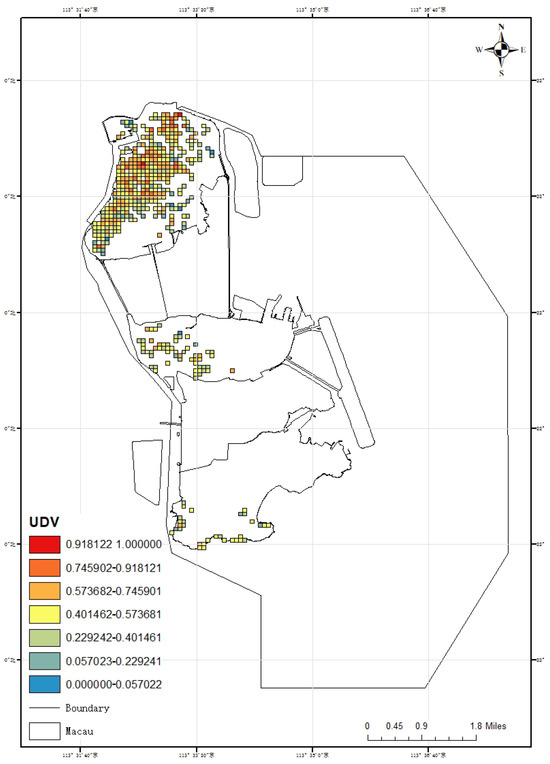 Generally, the UDV evaluation index system for typhoon vulnerability in Macau is used to identify the spatial characteristics of 470 grid samples and the potential disaster vulnerability relationships in the process. A UDV evaluation pointer system is proposed to explore its principal components, and a measurement model using a series of factors is established in three dimensions: exposure, sensitivity and self-adjustment capacity. This approach aims to reveal the factors that strongly influence the typhoon vulnerability of Macau and provide targeted suggestions for future prevention and adaptation to extreme disaster weather in Macau.