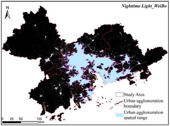 Although the study of identifying the spatial range of urban agglomerations is not a brand new topic, many studies have analyzed the identification and delineation of the spatial range of urban agglomerations in different urban agglomerations in China [54]. However, this study proposes a new way of fusing NTL data with social media data to accurately identify the spatial range of urban agglomerations based on the work of predecessors by conducting a detailed analysis of the PRD urban agglomeration. This introduces a fresh perspective and solution to the study of urban agglomeration spaces, offering a straightforward and widely applicable method that holds significant practical value and prospects for application.