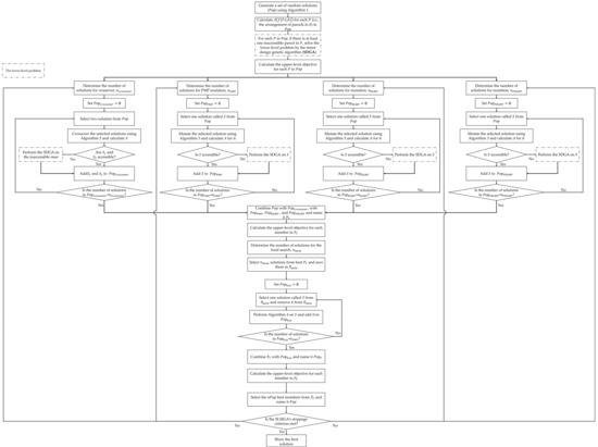 The CLSSD is an NP-hard problem as (1) the subdivision layout optimization is NP-hard per se [2], and (2) it is proved that bi-level programming belongs to the non-deterministic polynomial-hard class of optimization problems [26]. Concerning this characteristic and non-convexity of bi-level programming problems, refs. [27,28,29] recommend meta-heuristic algorithms for solving such problems.