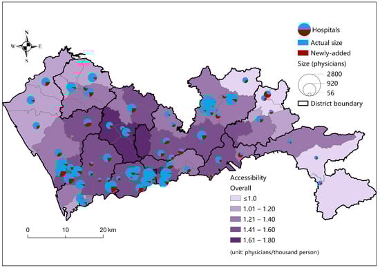 The distribution of the optimal newly added healthcare resources and multimodal accessibility.