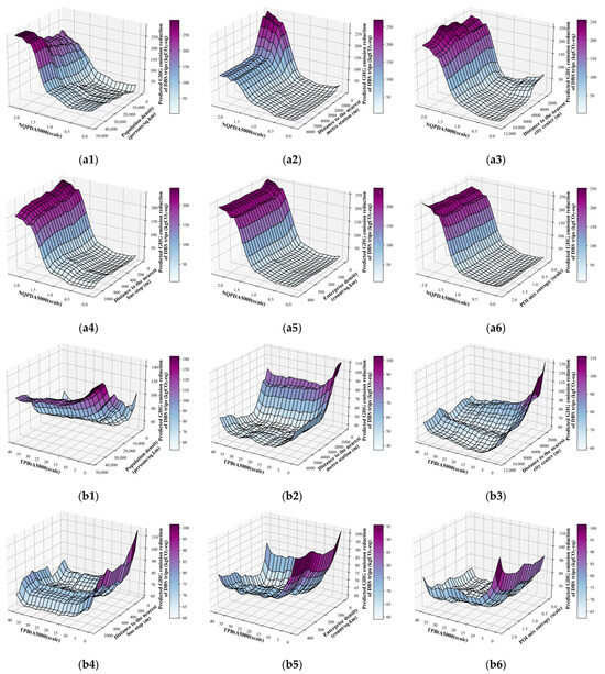 The GBDT approach can depict the associations between the predicted outcome and the independent variable (usually, one or two) by producing PDPs when the other independent variables are controlled. This feature enables this study to visualize the nonlinear associations between different independent variables and the potential GHG emission reduction of DBS trips. Moreover, PDPs can be used to evaluate the interaction effects between road network topological variables and built environment variables. The partial dependence of on can be defined as Equation (14):