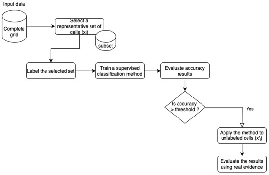 If the classifier obtained and evaluated with correctly classified data is sufficiently accurate, we will apply the classifier to the study area. The method for evaluating the goodness of the results obtained in unlabeled cells will depend on the characteristics of the problem and actual evidence based on observation or available data.