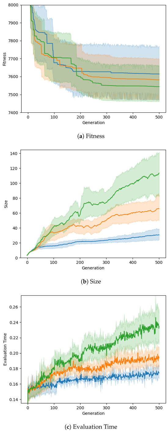 - Whigham, P.A.; Dick, G. Implicitly controlling bloat in genetic programming. IEEE Trans. Evol. Comput. 2009, 14, 173–190. [Google Scholar] [CrossRef]