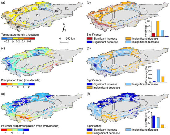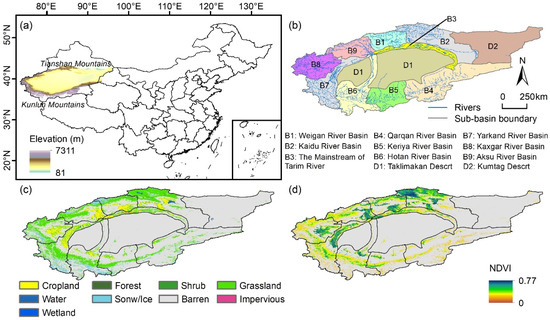 - Yu, H.; Bian, Z.; Mu, S.; Yuan, J.; Chen, F. Effects of Climate Change on Land Cover Change and Vegetation Dynamics in Xinjiang, China. Int. J. Environ. Res. Public Health 2020, 17, 4865. [Google Scholar] [CrossRef]