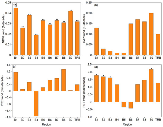 3.3. Relationships between Vegetation Greenness and Climatic Factors