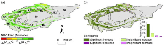 APA StyleJin, K., Jin, Y., Li, C., & Li, L. (2024). Spatial and Temporal Dynamics in Vegetation Greenness and Its Response to Climate Change in the Tarim River Basin, China. ISPRS International Journal of Geo-Information, 13(9), 304. https://doi.org/10.3390/ijgi13090304