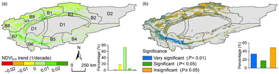 3.1. Spatial and Temporal Changes in Vegetation Greenness