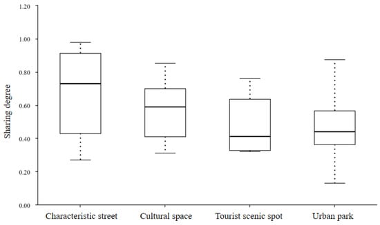Boxplot of resident–tourist sharing degree of different types of UPRS.